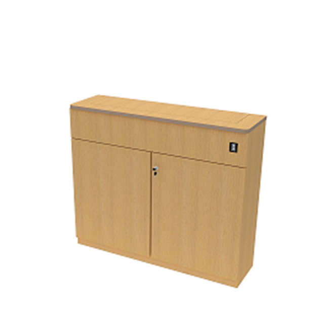 - 하부는 18mm 두께의 LPM 판 E0급 이상의 보오드를 사용하며 전선이동 타공을 하고 앞면은 도어로 설치한다.